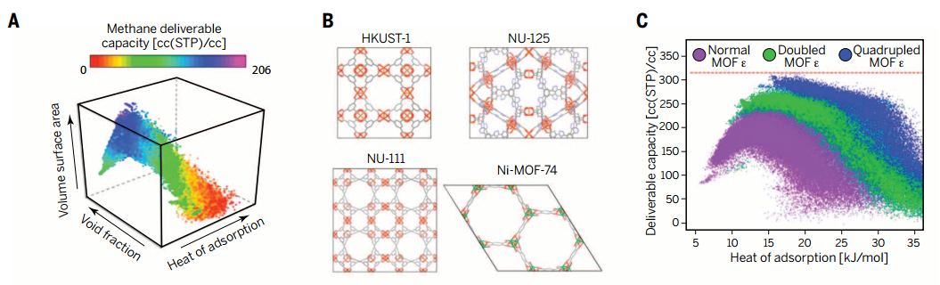 图5.使用高通量计算探索甲烷存储和输送的极限示意图