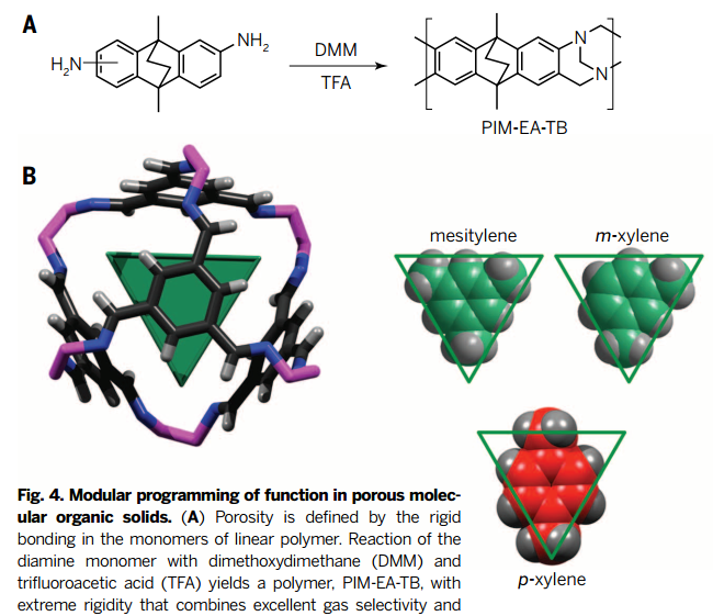 为沸石、MOF和COF开发的晶体工程方法不能直接应用于无定形固体(例如多孔聚合物),但是类似的模块化策略已可以通过选择适当的分子构件来控制诸如孔隙率和电子带隙之类的功能。结构和功能的计算预测的飞速发展提供了一种策略,可以用于识别特定应用的较佳多孔材料,例如通过对假设的MOF中气体吸附进行大规模的筛选。